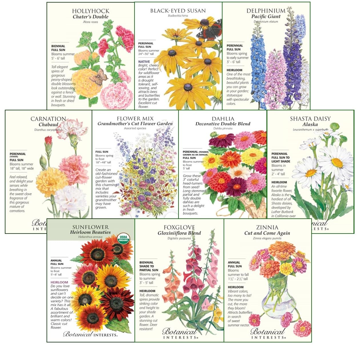 Amazon Com Botanical Interests Cut Flower Seed Collection 10 Packets With Recyclable Colored Box Patio Lawn Garden